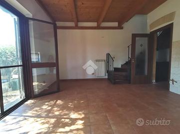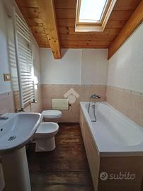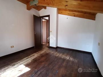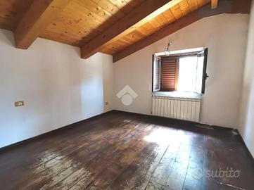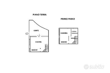 Internamente l'immobile in oggetto è posto su due livelli da 30mq a piano; al piano terra troviamo una cucina abitabile e bagno con box doccia, al piano superiore mansardato troviamo una camera matrimoniale, una cameretta (uso cabina armadio) e bagno con vasca.