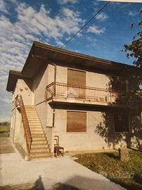 Rottanova di Cavarzere: in tranquilla zona residenziale, circondata dal giardino recintato, ampia porzione di bifamiliare da ristrutturare sviluppata al piano primo. Con accesso da scala esterna, l'immobile si compone di ingresso sul comodo disimpegno che separa la cucina abitabile dal soggiorno, entrambi con uscita sul poggiolo. Due camere da letto matrimoniali, una delle quali con un secondo poggiolo, il ripostiglio e il bagno finestrato con vasca completano la porzione. Libera e disponibile da subito, necessita di ristrutturazione conservativa e migliorativa. A completare, terreno di 1.820 mq.