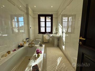Quattro bagni: uno a servizio del piano terra, due a servizio del primo piano e uno nel piano seminterrato.