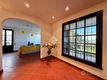 Soggiorno di circa 30 mq e cucina abitabile con accesso ad un portico con vista panoramica.