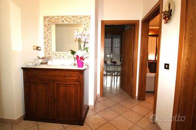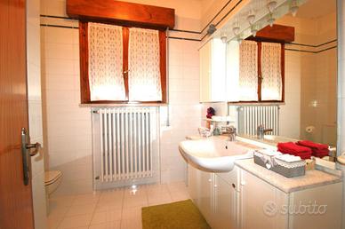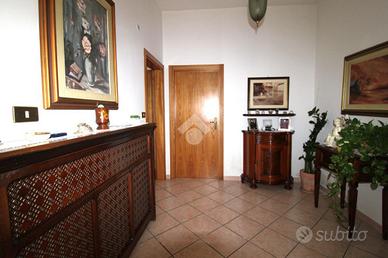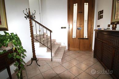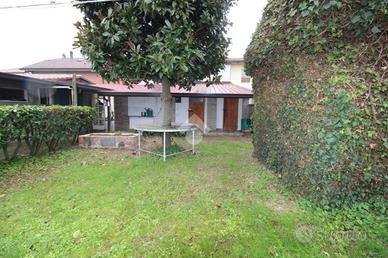 L'immobile è attualmente suddiviso in due appartamenti, una soluzione che può essere mantenuta o facilmente modificata a seconda delle necessità. Il piano terra si compone di soggiorno, cucina abitabile, retrocucina e bagno con doccia, una comoda camera da letto, un vano lavanderia molto grande e un secondo bagno. Al piano primo è presente il secondo appartamento composto da cucina abitabile, soggiorno, tre ampie camere da letto e due bagni. E' possibile ripristinare le cinque camere, servite da balcone. Gli spazi esterni della casa sono ampi: sia il giardino che la tettoia offrono numerose possibilità di utilizzo, sia per chi ama il giardinaggio sia per chi desidera uno spazio verde per il relax. La corte con tettoia è perfetta per ospitare momenti conviviali all'aperto. Inoltre sono presenti diversi vani ripostiglio e deposito.L'immobile si presenta in buono stato di conservazione