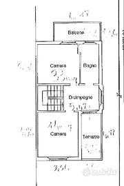 Salendo al piano primo la zona notte è composta da una camera da letto singola, una camera matrimoniale, il bagno padronale finestrato con vasca, un terrazzo e un balcone.