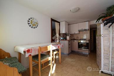 L'appartamento al primo piano è un bilocale; il soggiorno con angolo cottura è attrezzato di cucina nuova e possibilità di stufa a pellet. La camera da letto matrimoniale è spaziosa e gode di doppia esposizione.