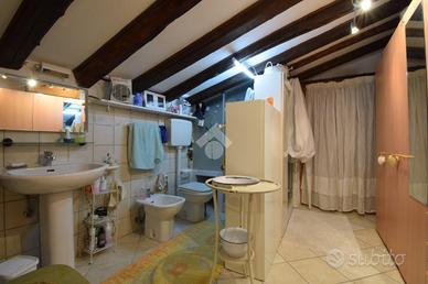 Il bagno principale è servito da box doccia e concede l'accesso all'area verde esterna di proprietà. Quest'ultima è caratterizzata da due terrazzamenti sfruttabili per fare un orto o semplicemente giardino.
