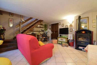 La sala è confortevole, esposta completamente a sud e impreziosita dalla stufa a pellet che integra il riscaldamento autonomo a metano.