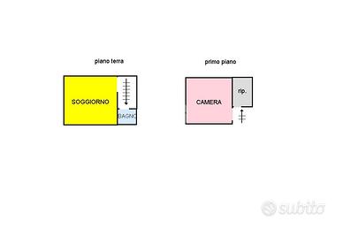 Al piano terra, l'ingresso si apre su un soggiorno con angolo cottura, perfetto per creare un ambiente open space accogliente e funzionale. Sempre al piano terra troviamo un bagno e la scalinata interna, che conduce al piano superiore.