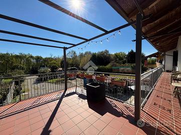 Nel comune di Chivasso, in frazione Boschetto, proponiamo in vendita una casa semindipendente di 147 mq quasi totalmente ristrutturata internamente nel 2024. Possibile visionare certificazione degli impianti (elettrico ed idraulico). L'immobile si sviluppa su più livelli ed è libero su due lati, offrendo un'ottima esposizione lato SUD e NORD. Doppio ingresso carraio con cortile su entrambi i lati. Al piano terra (presente vespaio), un'accogliente taverna dotata di camino con piccolo tinello rappresenta lo spazio ideale per momenti di convivialità e presenza di servizi con locale lavanderia. Possibilità di ampliamento con altri 50mq circa per altre 2 stanze al piano collegabili internamente. Un vano scala interno collega i vari livelli, ottimizzando gli spazi. Al piano superiore troviamo la cucina living open space in perfette condizioni per chi ama gli ambienti luminosi e funzionali, due camere da letto matrimoniali con bagno garantendo comfort e praticità. Dalla cucina abitabile tramite porta finestra usciamo sul terrazzo e sul balcone con affaccio panoramico. All'esterno, il secondo cortile di 2000 metri offre numerose possibilità per attività all'aperto e relax. Questa proprietà rappresenta un'opportunità unica per chi cerca una soluzione abitativa versatile e immersa nel verde. Gli infissi sono in doppio vetro con PVC. Sul tetto sono presenti pannelli fotovoltaici con esposizione lato SUD. L'immobile è termoautonomo con caldaia di ultima generazione regolabile tramite applicazione da remoto e presenti due ulteriori caldaie a pellet. L'immobile è dotato di sistema antintrusione volumetrico, perimetrale e con sistema di videosorveglianza. La soluzione ha impianto GPL (no metano) e fossa biologica per assenza collegamento fognature comunali. Completano la soluzione le tettoie.