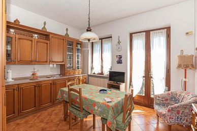L'abitazione si sviluppa su due livelli dove il portoncino d'ingresso si apre su un ampio salone con annesso camino ventilato. Tramite scala interna si giunge al piano principale composto da una cucina abitabile, un soggiorno, due camere da letto ed un bagno corredato di vasca. Si può godere sia di un balcone con accesso da tutte le stanze della casa e anche di un terrazzino, ideale da poter sfruttare nella bella stagione per momenti di convivialità.