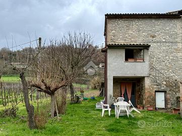 Località San Martin d'Upò: porzione di fabbricato, in pietra faccia a vista, da cielo a terra con ingresso indipendente, corredato di corte privata circostante e terreno di circa 1.400 m.q. complessivi. L'appartamento, composto da: cucina,due camere e bagno, è servito dall'acquedotto e pozzo privato ad uso irriguo. Il fabbricato è in buone condizioni generali così come l'interno.