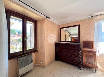 Il secondo appartamento, situato al piano primo, si apre anch'esso su una zona giorno. È presente un bagno finestrato con doccia, un piccolo tinello con angolo cottura anch'esso finestrato e una camera da letto di ampia metratura. Dal ballatoio si accede a un balcone ad uso esclusivo.