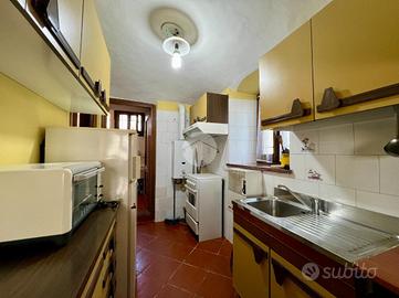 Il primo bilocale si trova al piano terra e si apre su una zona giorno con camino in muratura, tinello, una camera da letto cieca dotata di un piccolo armadio a muro e un bagno completo di doccia.