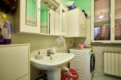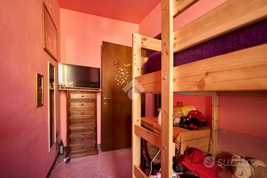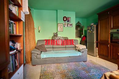 In centro paese, davanti al parchetto e vicino alla fermata dell'autobus. All'interno di un complesso residenziale chiuso. Questa soluzione è stata costruita nel 1997, ed è distribuita su tre livelli. Al piano terra c'è un locale openspace utilizzabile come taverna/area giochi, cantina. Al primo piano si trova la zona giorno con cucina a vista e un bagno con doccia. Al secondo ed ultimo piano ci sono due camdere da letto, una singola ed una matrimoniale, e il secondo bagno, con vasca e finestra. Completano la proprietà il box auto e il posto auto.