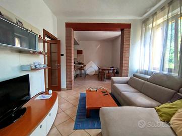 Soggiorno e cucina sono un ambiete comunicante, diviso da un arco in muratura che caratterizza piacevolmente gli spazi. Le camere da letto sono tre, tutte di comoda metratura. I bagni sono due, di cui uno con funzionale vasca angolare idromassaggio.
