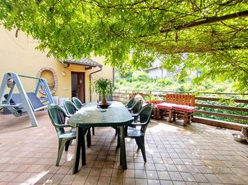 Alla zona giorno si accede dal terrazzo d'ingresso impreziosito da un piacevole bersò naturale. Il terrazzo, di notevole metratura si presta ad una piacevole personalizzazione.
