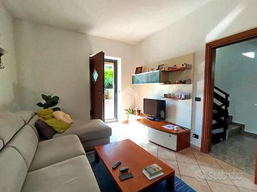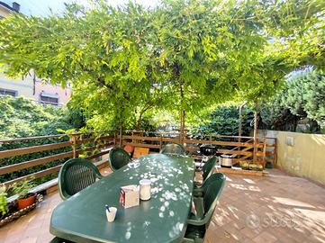 Alla zona giorno si accede dal terrazzo d'ingresso impreziosito da un piacevole bersò naturale. Il terrazzo, di notevole metratura si presta ad una piacevole personalizzazione.