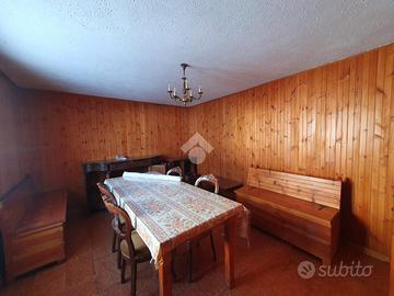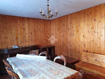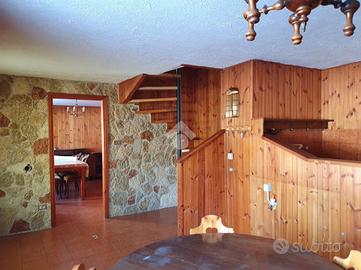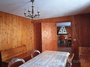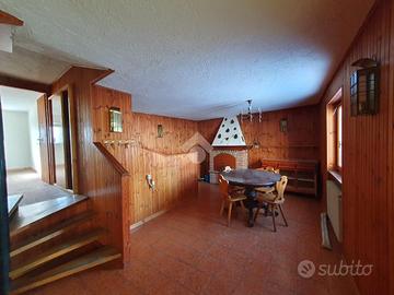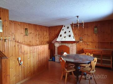 Dall'ingresso indipendente al piano terra giungiamo alla zona giorno composta da soggiorno con carattertistico caminetto a legna e sala da panzo separata.