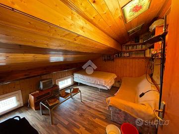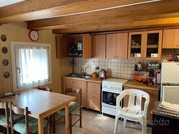 Entrando al piano terra veniamo accolti dal soggiorno dotato di stufa a legna con angolo cottura e dal bagno finsetrato con doccia;Una scala in legno ci conduce ai piani superiori dove troviamo al piano primo e secondo due camere da letto matrimoniali e all'ultimo piano un salottino mansardato.