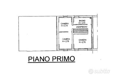 Al primo piano sono presenti tre camere e un bagno.