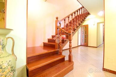 Entrando nella soluzione troviamo, al piano terra la zona giorno, composta da ingresso, ampio soggiorno, cucina abitabile, sala da pranzo, disimpegno con elegante scala in legno, cucinotto di servizio e bagno con doccia.