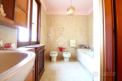 Peculiarità: aria condizionata in tutta la soluzione, riscaldamento con impianto di stufe gas indipendenti, ampio laboratorio attaccato alla casa adibibile ad ulteriore prolungamento dell'abitazione, infissi con doppio vetro, pozzo, 140 mq circa garage doppio e lavanderia.