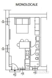 L'ambiente interno è caratterizzato da una zona giorno e zona notte condivise in un unico spazio versatile e luminoso, con un comodo bagno finestrato e un antibagno funzionale.