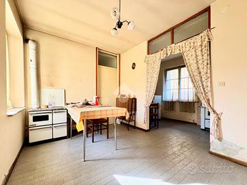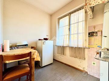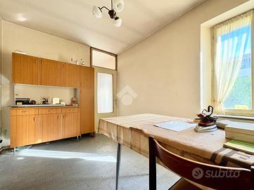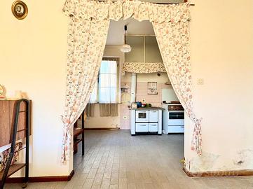 Al piano terra è presente un ingresso centrale; sul lato destro si trova il soggiorno, mentre sul lato sinistro si sviluppa la zona cucina, composta da cucinotto e cucina. Da quest'ultima si accede ad un pratico disimpegno che collega al bagno dotato di vasca e alla cantina.