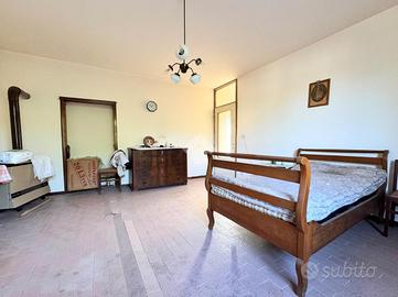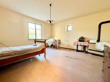 Dal vano scala posto nell'ingresso si accede al primo piano, dove un disimpegno, sviluppato in lunghezza, distribuisce tre camere, di cui due matrimoniali e una singola. Sullo stesso piano è presente un terrazzo che permette l'accesso al primo piano del deposito.