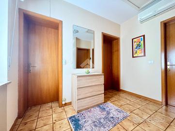 L'ingresso principale accede ai locali dedicati alla zona giorno, con salotto e cucina separati, entrambi affacciati nel corridoio.