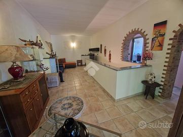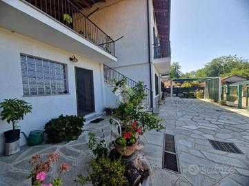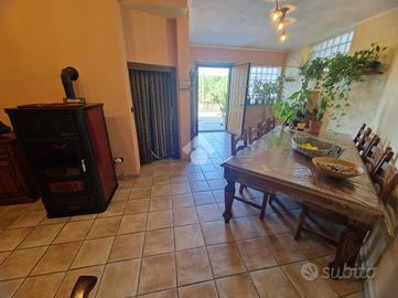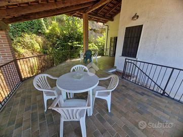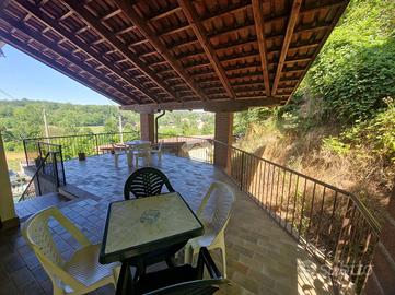 La casa indipendente su tre lati, sorge nella zona collinare e panoramica del comune di Cortandone. Dal cancello carraio si accede nel giardino privato dell'abitazione di circa 2150mq in parte piastrellato e agevole al raggiungimento del box auto di 80 mq e in parte verde. L'accesso tramite portoncino blindato conduce al piano terra in cui si trova la zona giorno con cucina a vista, uno studio, il bagno finestrato con box doccia e la prima delle camere da letto. La zona giorno si estende nella parte posteriore della casa in cui si trova una comoda tavernetta composta dall'ampia sala da pranzo, lavanderia e ripostigli salva spazio; questo locale ha anche la possibilità di essere raggiunto in modo autonomo tramite portoncino blindato a parte. La zona notte è collegata da una scala interna in pietra; al piano si trova una zona relax con angolo televisione e camino a legna funzionante, questo locale è direttamente collegato al terrazzo coperto vivibile tramite portafinestra. Le camere da letto sono tre e sono tutte matrimoniali ed affacciano sul balcone panoramico. La sala da bagno del piano è finestrata ed è dotata di doccia idromassaggio. L'abitazione è stata completamente ristrutturata nel 2015, sono stati sostituiti tutti gli impianti, gli infissi, sono state installate le zanzariere ed è stata sostituita la caldaia con una termo stufa a pellet. La casa risulta essere abitabile da subito.