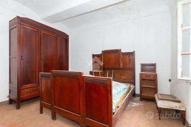 La casa, da ristrutturare ma con tetto in ordine, all'interno si compone di due locali al piano terra con bagno e cantina/rispostiglio, mentre al primo piano troviamo un secondo bagno, cucinino e altre due stanze. Il balcone si affaccia sul giardino e gode di una buona esposizione.