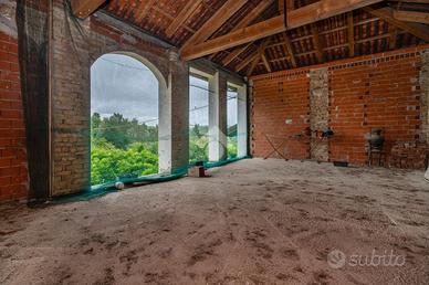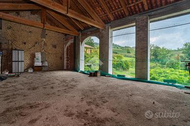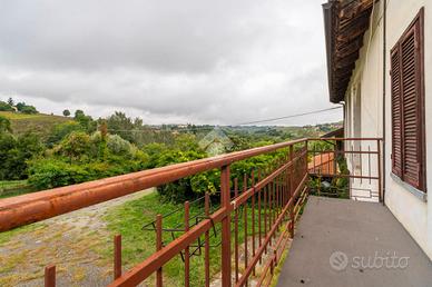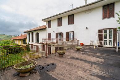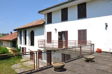 COSTIGLIOLE D'ASTI - Proprietà molto articolata situata in posizione collinare con vista sul castello: la parte principale, abitabile, ha una superficie generosa e si compone di sei locali e bagno, oltre al notevole spazio a nudo tetto (nuovo) nell'ex fienile, al notevole terrazzo panoramico ed all'ampia cantina. La rustica porzione attigua, in mattoni a vista, è da rivedere completamente e presenta, in prospicienza, un ulteriore fabbricato, una sorta di dépendence, costruito negli anni '70 ed indipendente, adatto eventualmente alla locazione turistica abbinata alla residenza principale. L'insieme dei fabbricati è circondato dal terreno di proprietà, seminativo e vigneto, di circa 13.000 mq., con la possibilità di creare, ad esempio, lo spazio per dei cavalli.