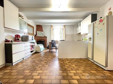 Entrando nell'abitazione e salendo pochi gradini ci troviamo nella zona giorno, composta da una comoda cucina abitabile e da un'ampio soggiorno.