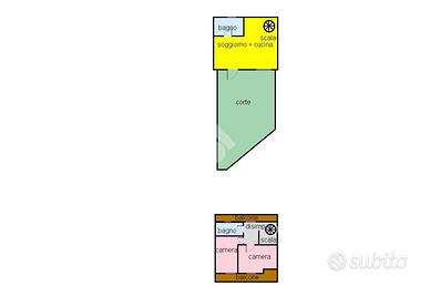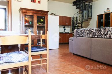 Dislocata su due livelli, presenta al piano terra la zona giorno composta dalla cucina abitabile, dal soggiorno con camino e dal bagno padronale.