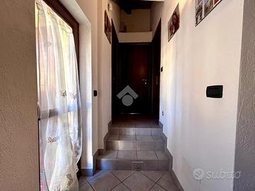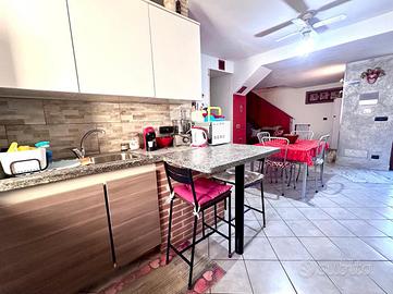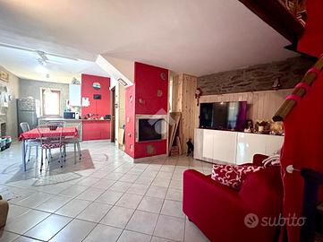 Terra tetto in frazione Allivellatori, disposto in contesto tranquillo e riservato. L'immobile così disposto, ingresso al piano terra con affaccio sul giardino. Al piano terra è sviluppata la zona giorno living con angolo cottura e un camino che riscalda tutto l'ambiente, e un bagno di servizio. Dal salotto si ha accesso alla scala che conduce al piano superiore. Al piano primo, tra le scale e il disimpegno è presete un angolo adibito a studio dal quale si accedre al disimpegno che collega le due ampie camere da letto luminose, di cui una con cabina armadio, un bagno completo di vasca e doccia e infine un ripostiglio a uso lavanderia. A completare la proprietà un box auto e una cantina in pietra caratteristica.