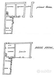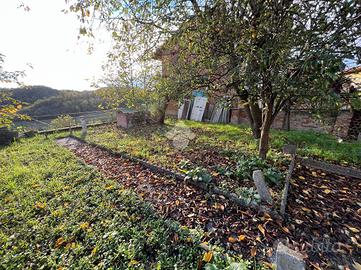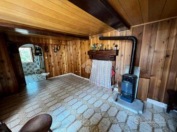 La casa è caratterizzata da un ampio sfogo esterno di circa 400 mq comprensivo di giardino, cortile e terrazza panoramica. L'ingresso dell'abitazione è comune con la porzione adiacente. Al piano terra l'immobile è dotato di due camini a legna: uno nel tinello di ingresso, separato dal cucinino, e uno nella sala. La scala interna, in legno pregiato, conduce al piano superiore in cui vi sono due grandi camere da letto, un bagno e il solaio. Al piano seminterrato sono presenti la cantina e il magazzino. L'immobile, ristrutturato 40 anni fa, si presenta in buone condizioni. Gli infissi e le imposte sono in legno. E' possibile acquistare il mobilio presente all'interno.