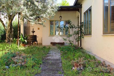 Nella parte restrostante dell'immobile ci sono ulteriori spazi a deposito, un grande magazzino/garage a cui si accede da un ampio passo carraio adatto a carico e scarico ed un terreno di proprietà di oltre 1000 mq.