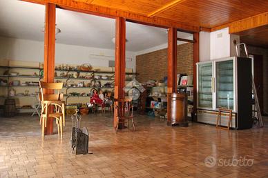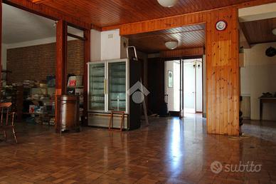 L'immobile è composto da un piano terra di a destinazione commerciale formato da due ampi locali comunicanti, un servizio e alcuni ripostigli per un totale di oltre 240 mq. Nella parte restrostante una ampia cucina ed un soggiorno a servizio della destinazione abitativa.