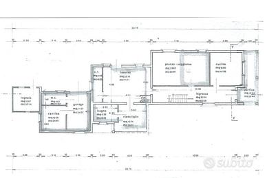 un portico d'ingresso ci conduce alla cucina e ad una zona giorno di circa 30mq. Proseguendo troviamo una taverna che ci permette di accedere sia al giardino, con ingresso secondario, e ad un ripostiglio trmite cui si arriva ad un bagno finestrato con doccia, ristrutturato.