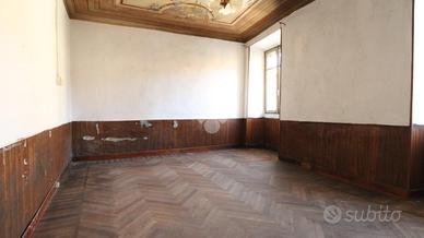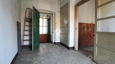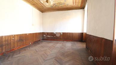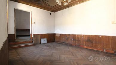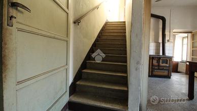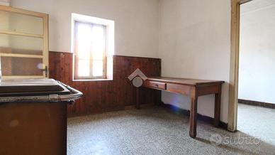 In centro paese, casa semindipendente disposta su due livelli da ristrutturare. L'ingresso dà su un locale disimpegno che suddivide i locali. La zona giorno è composta da cucina abitabile, separata dal soggiorno impreziosito da un affresco ed un ulteriore locale con accesso sul balcone dal quale si ha una vista aperta. Completa il piano un bagno con doccia. Invece, il piano primo accessibile mediante una scala interna, conduce alla camera da letto spaziosa con accesso sul balcone. Il riscaldamento è dato dai termoconvettori a metano ed è presente la canna fumaria. Il tetto si presenta in buone condizioni di manutenzione. A corredo della proprietà vi sono due locali cantina nel piano seminterrato.