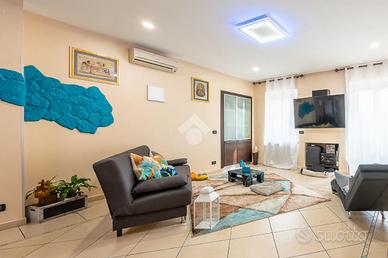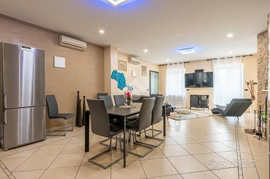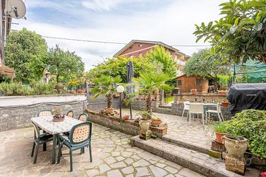La casa indipendente su due lati con accesso carraio e pedonale privato, risale ad una costruzione tipica dei primi anni del '900. La sua posizione strategica, situata nel cuore del centro del paese ma allo stesso tempo isolata ed immersa nel verde, offre la possibilità di raggiungere comodamente a piedi tutti i principali servizi, quali scuole pubbliche, poste italiane, fermata del pullman della linea 59, attività commerciali e la casa Comunale. La soluzione si sviluppa su due livelli oltre il piano sottotetto. Attualmente l'unità immobiliare è adibita all'utilizzo da parte di due nuclei familiari. Al piano terra troviamo il primo appartamento composto da una cucina abitabile in grado di contenere una parete attrezzata, un tavolo di dimensioni medie e un divano angolare. La camera da letto con accesso diretto sul cortile interno privato, ed un bagno con doccia completano la prima soluzione abitativa. Attraverso la scala interna si raggiunge il piano primo dove è presente la seconda unità. Grazie alla recente ristruttrazione e alle importanti modifiche murarie, è stato possibile andare a creare una zona giorno di circa 70mq, suddivisa in area soggiorno/pranzo, salone con camino e zona tv. Il piano si completa con la presenza di due balconi, un bagno con finestra e una spaziosa e luminosa lavanderia. Il piano mansardato (sottotetto usabile) è stato suddiviso in due ampie camere da letto con finestra e lucernari, un bagno ristrutturato e una cabina armadio che, grazie alla metratura, potrebbe trasformarsi in una terza cameretta. Una particolare attenzione è stata dedicata al riscaldamento, infatti l'immobile è stato dotato di due caldaie, una alimentata a pellet e una a gas. Inoltre è presente una terza caldaia utile alla sola produzione di acqua calda sanitaria. I serramenti del piano primo e del piano sottotetto sono stati sostituiti ed è altresì presente l'impianto di climatizzazione. La can..