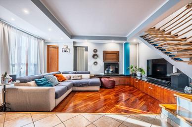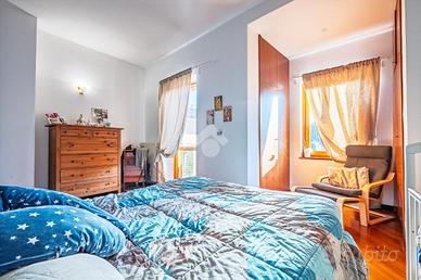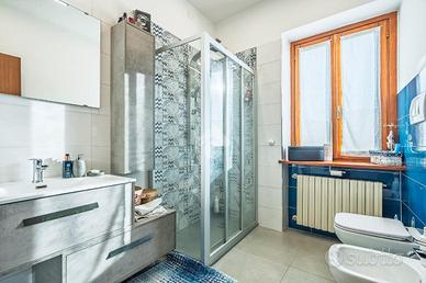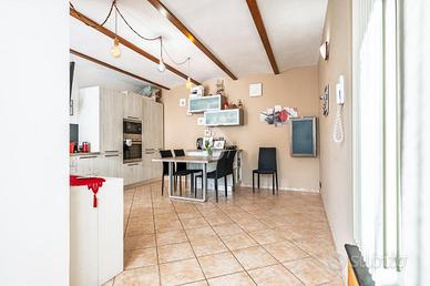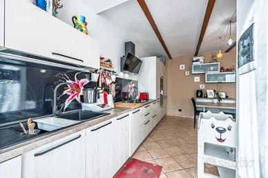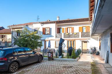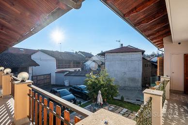 DRUENTO CENTRO STORICO. NESSUNA SPESA CONDOMINIALE. PORZIONE ESTERNA DI GIARDINO. Nel cuore del Centro Storico di Druento proponiamo in vendita una casa semindipendente con porzione esterna di giardino ad uso esclusivo. Dalla porta d'ingresso un soggiorno doppio caratterizza la zona giorno per luminosità ed ampiezza. A completare il piano è presente una cucina abitabile di generosa metratura anch'essa luminosa e dotata di portafinestra con affaccio diretto sul giardino, perfetto per momenti conviviali in famiglia. Al primo e ultimo piano sono presenti due camere da letto di cui una matrimoniale ; entrambe dotate di finestra e portafinestra con balcone comunicante su tutto il primo piano. Caratterizza il piano una cabina armadi posta a fianco della camera da letto matrimoniale. Completa la zona notte un bagno dotato di box doccia e finestra completamente ristrutturato nel 2020. Al piano seminterrato è presente un locale ad uso cantina caratterizzato da mattoni a volta. Il riscaldamento è autonomo dotato di termo-stufa collegata direttamente ai radiatori dell'immobile. La proprietà comprende un posto auto privato e l'assenza di spese condominiali rende perfetta la gestione dell'immobile.