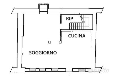 La proprietà si eleva su due livelli. Al piano terra è presente il soggiorno con angolo cottura e la possibilità di ricavare un bagno di servizio.