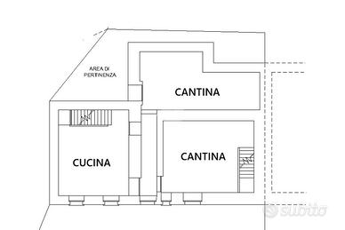 L'immobile si eleva su due livelli con ingresso al piano terra dove si trova la cucina e due cantine caratterizzate da volte a vista.