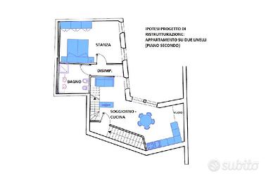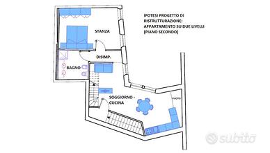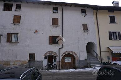 Ampia porzione di casa completamente da ristrutturare disposta su 3 livelli oltre a spaziosi locali deposito/cantine a piano terra. Possibilità di realizzare 2 ampie unità abitative con accesso indipendente di cui una su due livelli con posto auto coperto. Nella piazzetta antistante sono presenti alcuni posti auto comunali. Comodo a tutti i servizi.