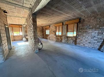 L'immobile, gode di un ampia metratura , si sviluppa su tre livelli ed è così suddiviso: al piano terra troviamo un locale garage finestrato di 124 metri quadri. Attraverso la scala , sia esterna che interna, raggiungiamo il primo piano composto da : soggiorno servito da balcone, sala da pranzo e cucinotto.