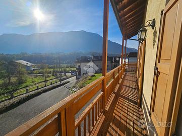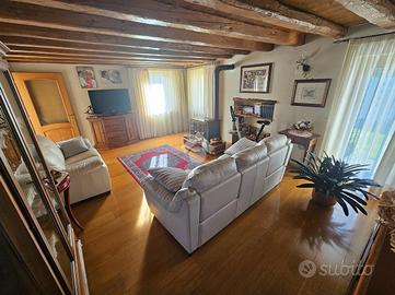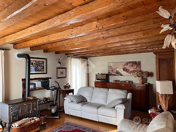 A completare la proprietà un vasto giardino che offre una vista mozzafiato sullo splendido panorama feltrino, sul castello e sulle prealpi, che dominano la vallata.