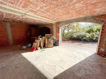 Termina la proprietà il fabbricato composto dal box doppio in larghezza al piano terra e dalla grande cantina al piano interrato; questo immobile è circondato da circa 300mq di giardino privato. Tra la casa ed il giardinobox vi sono circa 30 metri.