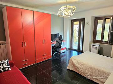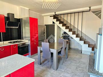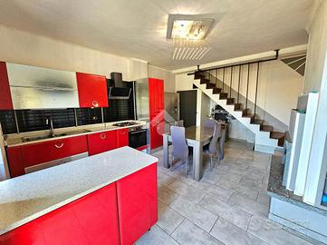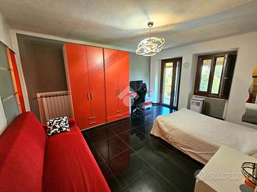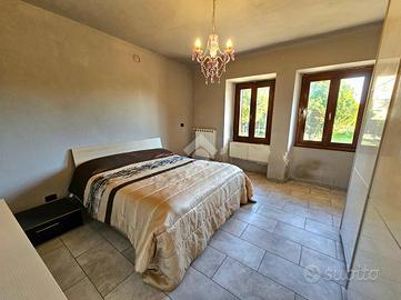 L'abitazione è disposta su due piani: al piano terreno abbiamo ingresso su cucina abitabile con camino, un bagno con doccia e una camera da letto volendo sfruttabile come salotto; al primo piano ampia camera matrimoniale con balcone e bagno di servizio.