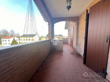 Al primo piano, il disimpegno divide le due camere matrimoniali, terrazzo, anti bagno e bagno con vasca.