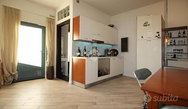 Piano terra: Ingresso, cucina abitabile e bagno.